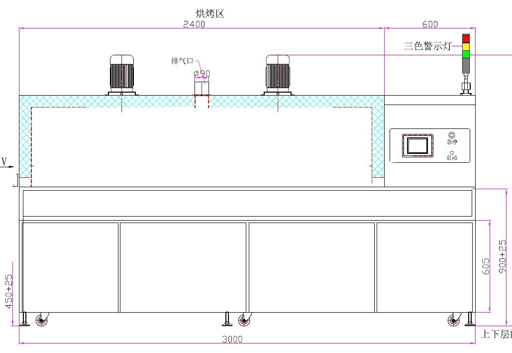 | 3、采用熱風(fēng)循環(huán)風(fēng)式加熱 | 4、人機(jī)界面觸摸屏控制(7寸威綸屏+匯川PLC) |