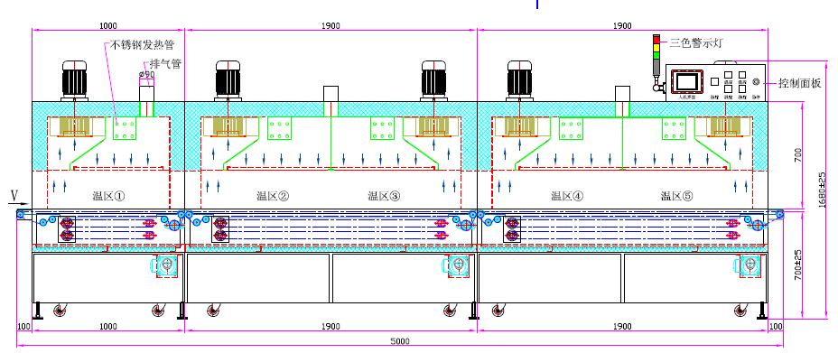 | 5、入口高度:250mm | 6、超溫停止加熱并報(bào)警 |