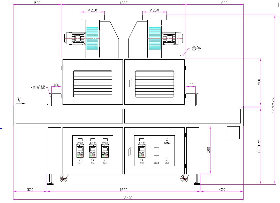 | 1、UV燈功率:7.2kw4支(鐵燈1支、鎵燈1支、汞燈2支) | 2、UV燈總長:420mm、弧長300mm |