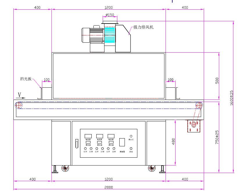 1. UV燈功率:2.0kW*3支(UV汞燈燈) 2. UV燈總長:400mm、弧長:300mm