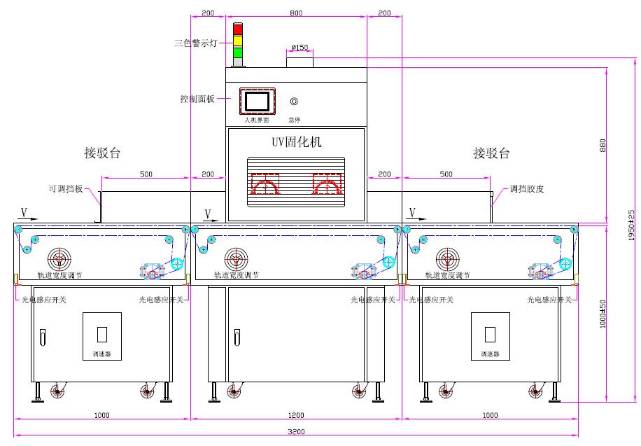 | 11、輸送寬度:50~450mm | 12、輸送速度:0~3m/min(觸摸屏直接讀數(shù)) |