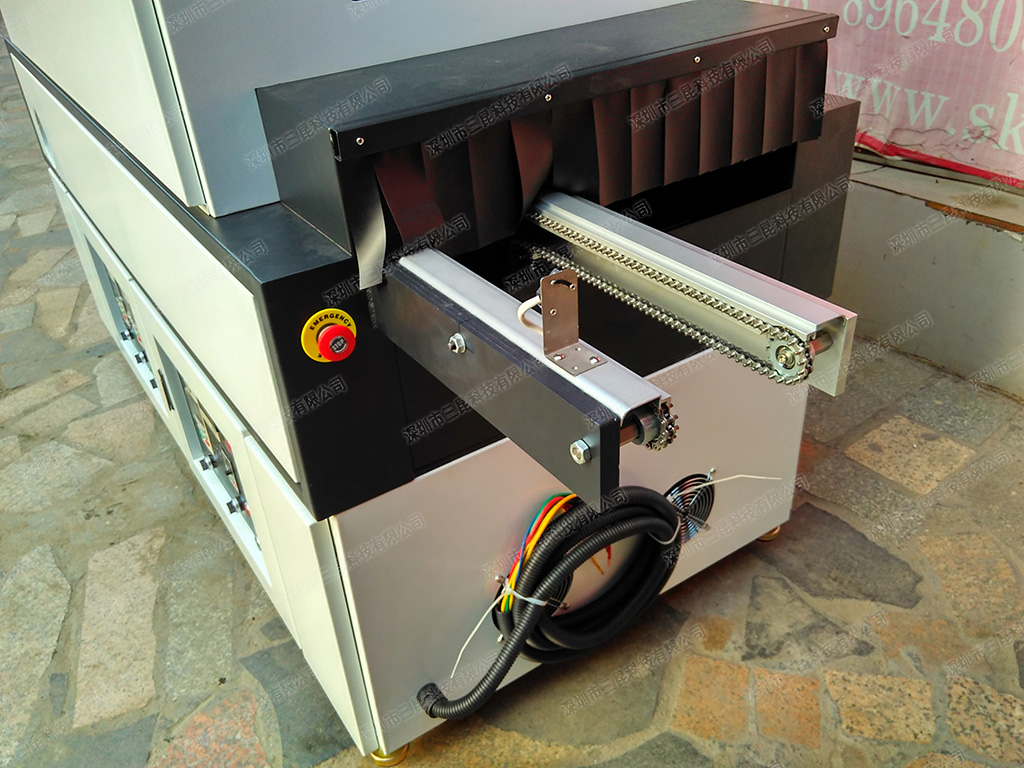 | 7、采用上、下排風(fēng)系統(tǒng) | 8、輸送材料:不銹鋼長(zhǎng)銷(xiāo)軸鏈條(銷(xiāo)長(zhǎng):5mm) |
