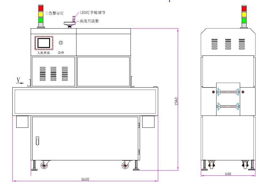 | 3、LED燈照射面尺寸:200*25mm*2組 | 4、人機(jī)界面觸摸屏控制 |