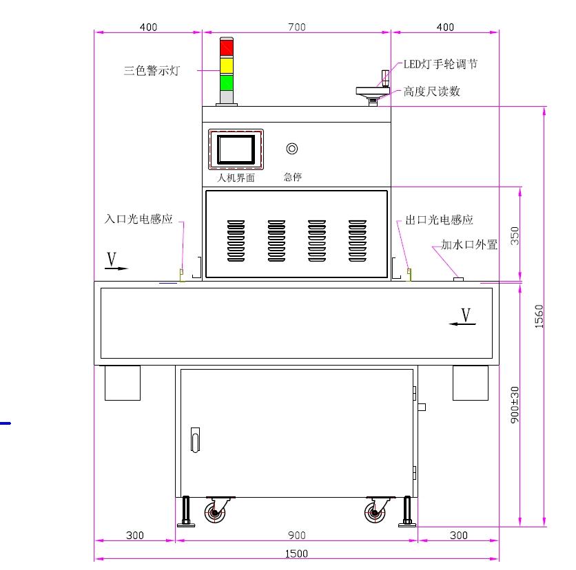 | 9、輸送寬度:300~350mm(可調(diào)) | 10、輸送速度:0~5m/min |