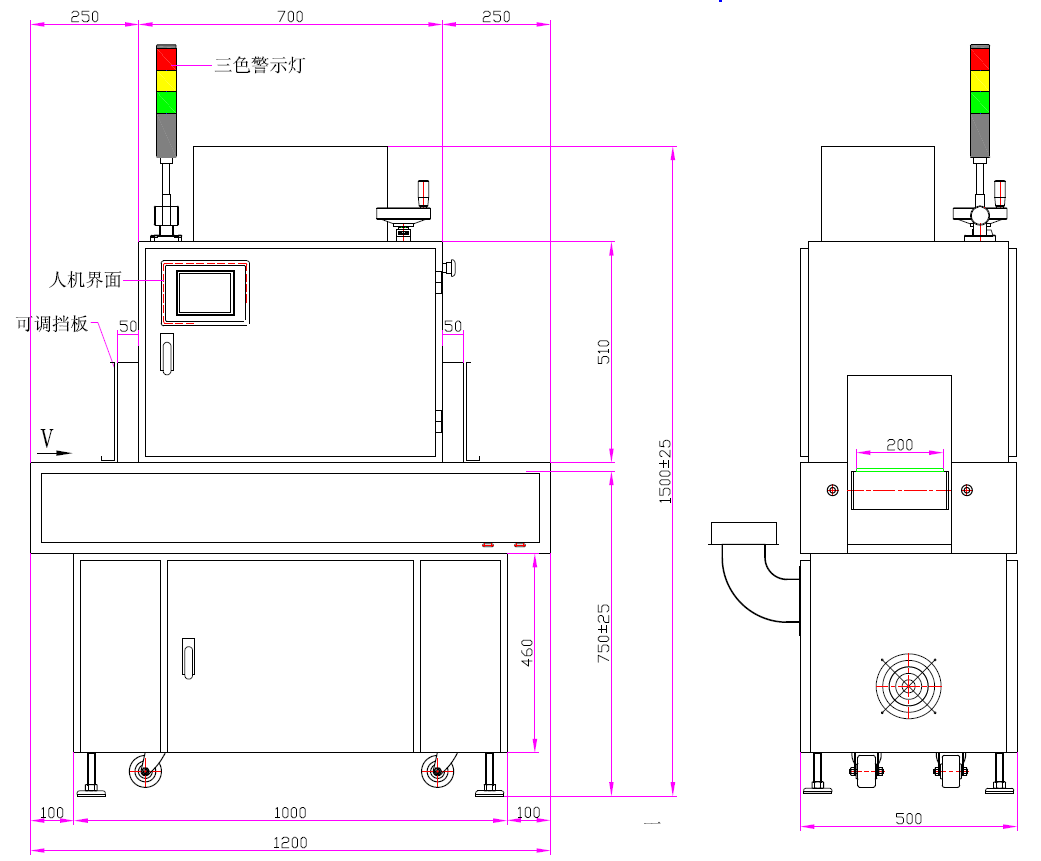 | 9、輸送寬度:200mm | 10、輸送速度:0~7m/min |