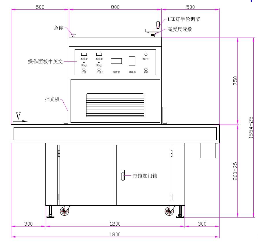 | 9. 輸送速度:0.5~6m/min(速度表直接讀數(shù)) | 10. 入口高度:100mm |