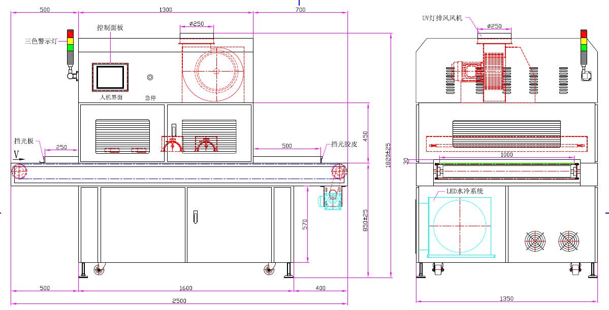 | 1、UV光源:LED*2組、UV汞燈12kw*2組 | 2、UV汞燈總長:llOOmm、弧長1000mm |