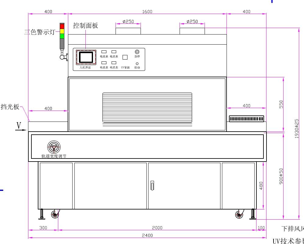 | 3、UV燈功率:3.0kw*2支、6kw*2支(UV汞燈) | 4、UV燈總長(zhǎng):3.0kw:400mm、6kw:620mm |