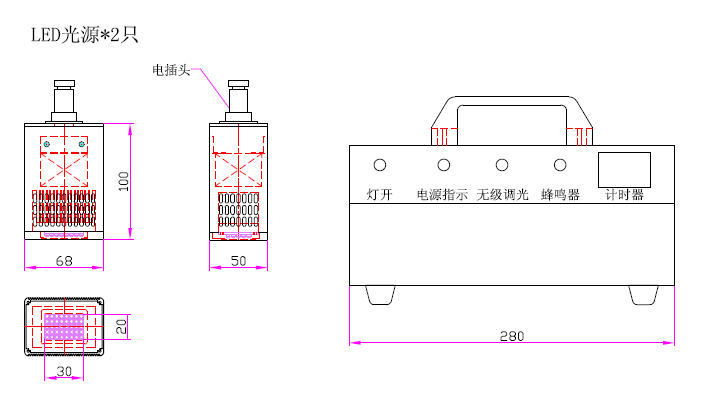 | 5、照射面:30*20mm | 6、雙燈頭、計(jì)時器功能 |