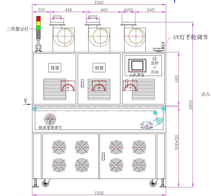 | 7、UV燈高度手動調(diào)節(jié)、軌道寬度手動調(diào)節(jié) | 8、采用上排風系統(tǒng) |