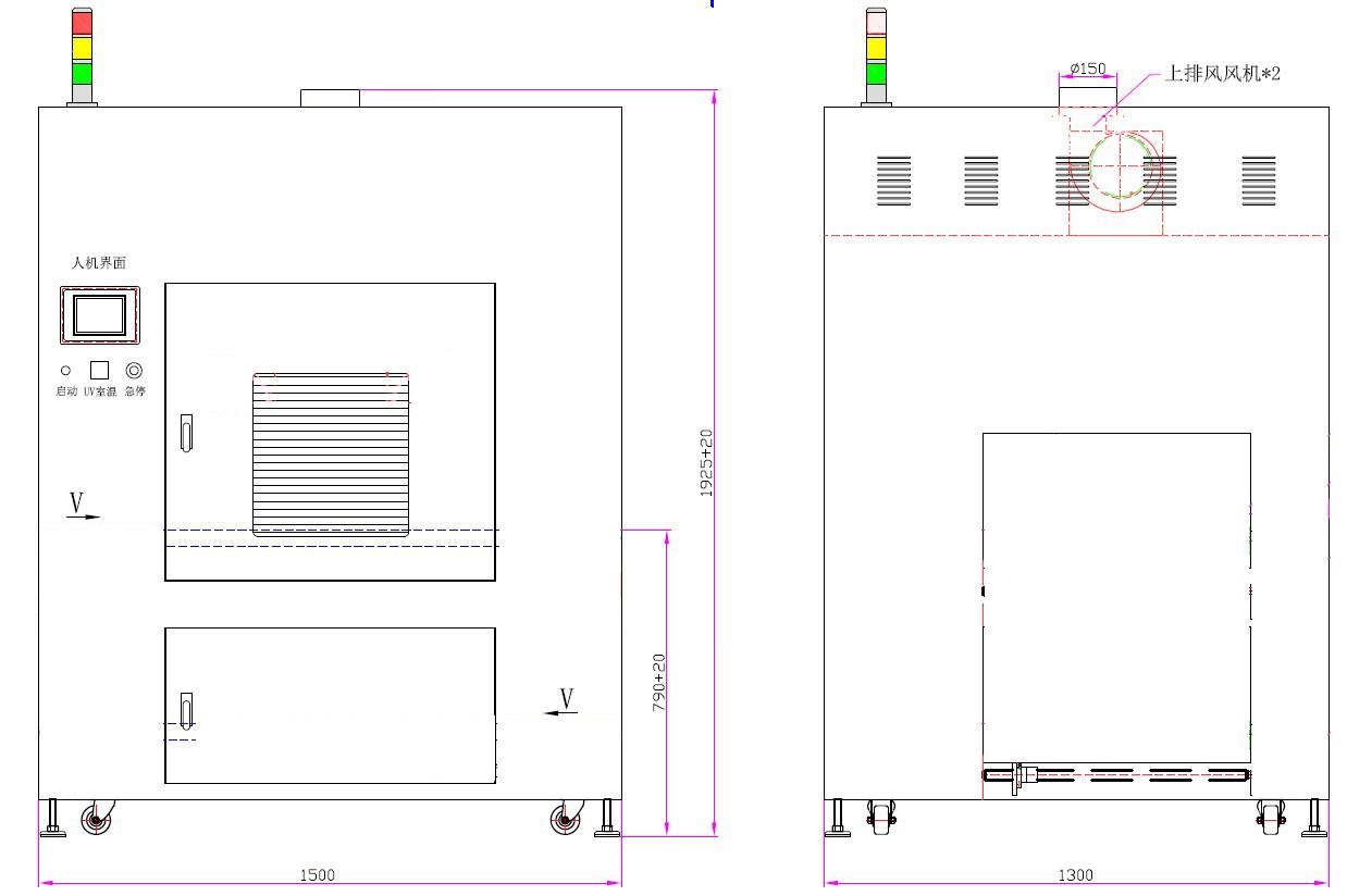 7、UV燈高度電動調(diào)節(jié),軌道手動調(diào)節(jié) 8、采用上排風系統(tǒng)