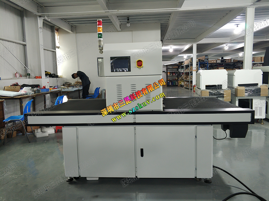 uv固化機(jī)是使用汞燈釋放寬波段的紫外線固化燈,三個(gè) Kun